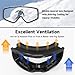 【Professional Ventilation】- Designed to reduce fogging and optimizes the flowing air over the inside of the lens. Ski goggles provide a smooth air-flow system that brings fresh air and exhausts moisture quickly and effectively. Prevents fogging by optimizing the airflow inside the lens and preventing moisture from building up.