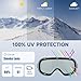 【Anti-fog & 100% UV400 Protection】Anti-fog ski goggles with UV400 protection adopt high performance double-layer lens to prevent fogging and protect your eyes from the glare, providing you with excellent clear vision and protecting your eyes from harmful sun rays. The super-hardening outer lens can improve anti-scratch performance.