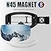 【PROFESSIONAL VENTILATION & FRAMELESS DESIGN】Designed to reduce fogging and optimizes the flowing air over the inside of the lens. ski goggles provide smooth air-flow system which brings fresh air and exhaust moisture quickly and effectively. The big, toric, frameless lens provides a truly unobstructed & clear view of the slopes.