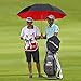 FIGHTS THE STORMY WEATHER: The vented double-canopy design adds strength and flexibility. The solid framework underneath flexes with the wind so that the umbrella keeps its shape The fiberglass ribs, hub and shaft do no conduct electricity, so you can safely use this umbrella in stormy weather throughout the course.