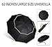 【High Quality & Unique Design】SATOL black oversize windproof golf umbrella has a 62-inch wide canopy that provides abundant coverage. The travel umbrella is large enough to protect 2 people from the rain. The folding umbrella is made of a 210T durable pongee fabric that is fully water-resistant. This UPF 50+ anti-UV fabric also gives you optimum protection during the hottest days.