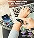 【Health Metrics Monitoring】These fitness watches for women and men pack 24/7 heart rate, blood pressure and blood oxygen monitors. You could check those real-time health metrics anytime, anywhere conveniently on your wrist and check the all-day data record in the App.The sleep tracker keeps track of time spent in different sleep stages including REM, light sleep,deep sleep,and the time when you wake up, helps you to get a better understanding of your sleep quality.