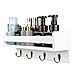 VERSATILE ORGANIZATION:No more lost keys! There have 4 double hooks, you can easily hang your keys on this shelf so you can grab it and walk out the door with ease. This coat rack are also great for hanging your hat, bag, sunglasses, accessories, dog leash and cat collar, finding what you need will no longer be frustrating. 1 slot to storage mails,letters,newspaper,bills or more; 1 small floating shelf to display small succulent,sunglasses, accessories ornament or more.