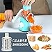 🧀🧀High Efficient Cheese Grater: Crank 1 circle means 12 cuts by traditional. You will SAVE much TIME to prepare you meals. The cheese shredder is perfect for cheese, hash brown, potatoes, veggies, radish, carrot, zucchini, cucumbers, nuts, cookies and more. Need special attention are: soft cheese, barrel with slicing or Coarse Shredder. Hard cheese, use Fine Shredder.(In particular, it works especially well with cheese)