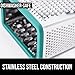 Stainless Steel Construction: the sharp, high quality stainless steel blades on all 4 sides of the grater help grate, shred, zest and slice your foods quicker than ever; rust resistant and dishwasher safe for long lasting use