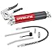 INCLUDES: 1 Grease Gun (7,000 PSI), 1 Coupler, and an 18" flexible hose extension.