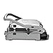Brushed stainless-steel housing; sturdy panini-style handle; floating cover to adjust to thickness of food