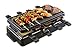 Includes 8 heat-resistant spatulas and 8 raclette dishes with non-stick coating