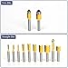 [WHAT U GET] 1/4-Inch Shank Router bit set which includes 3* Straight bit, 1* Core box bit, 1* Dovetail bit, 1* 90 degree V Grooving bit, 1* Flush trim bit, 1* Round over bit, 1* 45 degree chamfer bit, 1* Roman ogee bit, 1* Hex wrench, 1* Service Card, 30-Days Money Back Guarantee and Worry-free 1-Year Warranty
