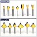 🛠️【What You Will Get】 The router bits set includes Corner Round 3/8", Dovetail bit 1/2", 45° Chamfer bit 1-1/4", Corner Round R1/4", Flush Trim bit 1/2", Roman ogee bit 5/32", Cove bit R1/4", Cove box bit R1/4", Straight bit 1/4", Straight bit 1/2", Straight bit 5/8", and 90° "V" Grooving bit 1/2".