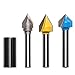 3Pcs 90 Degree V-Groove Router Bits - 1/4" Shank, Cutting Diameter: 1/4", 3/8", 1/2", Cutting Height: 1/4", 3/8", 1/2"