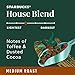 STARBUCKS HOUSE BLEND COFFEE—Aroma, body and flavor all in balance. Starbucks House Blend coffee is a medium roast with notes of toffee and dusted cocoa