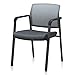 Reception guest chair features a seat and back with vinyl upholstery and molded plastic arms