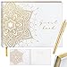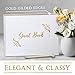 Elegant Guest Book: Beautifully crafted 7" x 9", 120 pages (60 sheets) Guest book, made with thick and durable paper stock, gold foil printing on the cover and gold gilded page edges.