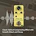 Classic analog compressor effect pedal for guitar and bass. 3 Controls by Sustain, Level and Attack. Sustain to adjust the compression ratio for a longer period when the effect level is increased. Attack - lower level gives a quick/tight response, higher level give a slower/smooth response