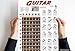 🎸 Great learning tool for beginning and intermediate guitar players. The 11" x 17" instructional guide is nice to hang on the wall wherever you practice for easy reference, instead of flipping through a book. This chart includes the notes of the guitar displayed on the fretboard and a chord chart. The chord chart includes the most used major chords along with their minor and 7th chord variations. This information can be found in books, but rarely on one easy to read chart!