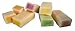 Mouth watering, colorful candy. Flavors are pineapple (white), strawberry (green), lemon (yellow), orange (orange), and raspberry (red).