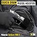 SUPERB VERSATILITY & FITS MOST PISTOLS - The gun holster concealed, works great for modern day carry. You can wear it with anything; suit and tie, jeans, leggings, pajamas, gym shorts, etc, no more limits to your wardrobes, compatible with Glock 17, 19, 23, 38, 25, 32, 26, 27, 29, 30, 39, 28, 33, 42, 43, 36, Smith & Wesson, Bodyguard, M&P Shield, Sig Sauer, Ruger, Kahr, Beretta, Springfield, Taurus, Kimber, Rock Island, Bersa, Kel Tec, Walther, and more