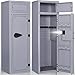 🔫【Larger, Deeper and Safer Gun Safe with Separate Lock Box】: Gun safe for rifle and pistol is made of cold rolled steel. Gun safe has 3mm thick door and 3*2cm steel locking bolt with anti-tampering and anti-pry features for added security. Gun safe can hold 3-5 rifles/shotguns (with/without scopes) up to 45" guns. The upper part of the gun cabinet has a separate lock box for storing pistols, bullets and other valuables. Separate lock box external dimensions: H7.55" x W12.6" x L9.84". Overall external dimensions: H55.12" x W12.6" x D9.84"