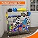 💎DURABLE AND EASY TO ASSEMBLE:💎 Made of a durable coated steel frame, the sports storage organizer offers long-lasting strength and impressive performance. Simple structure makes it easy to assemble quickly with the help of instruction and tools included.