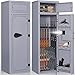 【Large Rifle Safe with High Security Level】: The rifle safe is made of cold rolled steel. The gun safe has a 3mm thick door and 3*2cm locking latch for added security; large rifle safe suitable for 3-5 rifles shotguns, gun safe exterior dimensions: H54.33" x W11.8" x D11", interior dimensions. H54.13" x W11.61" x D8.66"; adjustable pistol rack on top to store suitable pistols