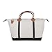 FEATURES: Interior pockets lets you store your small items safely in a contained compartment. Leather handles + adjustable clip on strap. Adjustable Shoulder strap with leather shoulder patch offers comfort on the shoulders. Optional side buckle to tightly secure the duffle bag. Color trim + natural canvas fabric gives the duffel a youthful/trendy look.