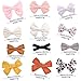 CUTE -12 pairs - 12 pairs different styles, colors and patterns included to match any of your sweet girls' outfit. The assortment of beautiful girl hair clips includes faux leather bows, oversized leopard bows, mustard, ivory, pink and gray linen bows, floral, black velvet, lace, solid colors and more!