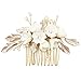 【Material】 The white wedding hair side comb is made of quality alloy wire, ceramic flowers, faux pearls and metal leaves, delicate and elegant, easy to wear and not easy to fade