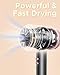 【Powerful Motor for Faster Drying】The professional hair dryer delivers strong wind for fast drying even thick wavy hair in less time, because of the High-speed motor, up to 18,000 rpm. Compact design will be more lightweight & portable Lightweight & Portable.