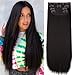 【4PCS Thick Hair Extensions】 Each pack includes: 2 pieces of 4.8 inches wide with 2 clips on the weft; 1 piece of 6 inches wide with 3 clips on the weft; 1 piece of 7 inches wide with 4 clips on the weft. Black Chip in hair extensions, Several minutes to wear, Fashion the whole day.