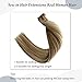 【Ultra Thin Invisible Tape ins】--Tape in hair extensions human hair used double sided adhesive invisible re-usable tapes, , no hair loss,pretty sticky not easy to fall off. Replacing the tapes every 2-4 weeks to make the tape more neat and sticky, and safe to wear. Compare with clip in hair extensions,brown tape in extensions is flat, more seamless and invisible, blends better with your own hair, more natural and versatile for many hairstyle: like ponytail and buns hairstyle.