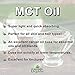 Our MCT oil is very light, leaving no greasy residue after it has been applied. It absorbs quickly into skin making it ideal for use as a moisturizer. It is great to use for massages, hair conditioners and treatments, body moisturizers, and more! A couple drops of essential oils to fractionated coconut oil can add some pleasant scents to your oil.