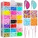 FREE PLASTIC ORGANIZED BOX The hair bands come in 24 different colors and every color is organized in a nice box so it is easy to choose your color and stay mess free!AND Each color is stored in a little baggy inside a compartment in the plastic storage bin so they don't just fly everywhere when you open the container. You can custom the size of each compartment to be bigger or smaller to your liking.