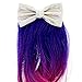 ❀This magical pack includes 2 items. One has an iridescent sparkling silver bow at the top with vibrant rainbow ombre faux hair attached underneath it. The other one has a shinny holographic bow with fuschia, baby blue and luminous green ombre faux hair attached underneath it. Clip any of them into her hair, and brighten up her day!