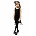 PRODUCT INCLUDES: This Charleston Flapper girl's costume comes with a black dress, a waist sash, a faux fur collar, a headband, and a pair of fingerless gloves.