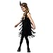 Delicate Girl's 20s Flapper Dresses Costume Set: the 20s flapper costume dress include 1 piece of black fringed flapper dress, 1 piece of black sequined headband with feather and 1 piece of black long glove