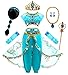 CLASSIC PRINCESS DRESS -- Complete gorgeous Jasmine costume for girls includes a dress, a headwear, a necklace and a pair of earrings, which will make your little girl into princess Jasmine herself.