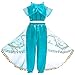 High Quality Dress and Jasmine Wig -- This Two-Piece outfit set includes a beautiful off shoulder belly dance crop top, a pant with elastic band and a Jasmine wig for kids. Girls blue classic princess dress up costume outfit. Put you in the world of role play