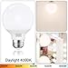 【LED Globe Light Bulbs 4000K Daylight】 LED bulbs with 4000K natural daylight are generally recommended as a household lighting. For the reason that 4000K is brighter than 2700K and softer than 5000K. The combination of both of them makes it get close to the natural daylight of morning at 10:00 AM. With the high light transmission lampshade, the g25 LED globe light bulb emits uniform daylight for a bathroom without blind corner and shadow.