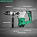 Hammer and drill functions: Equipped with a green dual-mode selector on the top, you can easily convert between hammer and drill function by one button depending on your tasks