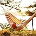 Outdoor leisure 2 person hammocks - double person hammock is 118.3" long x 63" wide. And bed size is 94.5" long x 63" wide with a 350LBs capacity, rope long 9.8FT*2, created in the style that has been handed down for generations by native artisans in Northeastern Brazil, making it cozy and soft.
