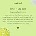 This Sea Minerals scent is a blend of bergamot, lemon, rosemary + crisp marine notes.
