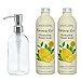GEL HAND WASH & DISPENSER SET: Keep hands feeling clean and soft with this sustainable Grove Co. bundle that includes two Lemon & Eucalyptus Scented Liquid Hand Soap Refills and one Glass Soap Dispenser. A durable home starter kit or housewarming gift