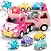 Best Enlightenment Gift:This cartoon car toy adopts a dreamy pink color system. It's the best toddler girl toys for 3 4 5 year old girls. Suitable for birthday gifts, school prizes, car seat toys, Christmas present, etc.