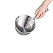 Compact Size: This stainless steel measuring pan measures approx. 4.7" diameter x 2.5" height x 5.5" handle length with the maximum capacity of 17 oz. There are clear measurement markings inside for precise liquid measuring