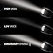 ["4+2" Modes] This rechargeable flashlight has 4 brightness modes (Eco/Low/Med/High),plus 2 flash modes(SOS/Strobe) for different situations.Eco: bright enough in actual darkness to use. High:Point at ceiling, it's bright enough to light up the room,just like daytime.It's perfect for work and camp.