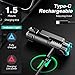 【Rechargeable Power Indicator & Fast Charging】High power flashlight has a rechargeable design, which is very energy efficient and convenient. The package includes two charging cables that can be powered by a computer, a power bank, and car charger, charging time is just 4-6hours for Max 12 hours runtime. This led flashlight with indicator design, You can clearly understand the power consumption and charging progress, charge in time, and unplug when fully charged to extend the ba ttery life.