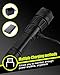 LONG BATTERY LIFE : This super bright flashlight equips a 5000 mAh battery to support 5-10 hours of lighting; 4 indicator lights on our rechargeable flashlight can display the battery power remain.
