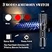 3 Modes with Memory: Switch between modes by half-pressing the button on the tail: 'red(H)'-'red(L)'-'white'. Our flashlight also has a memory function, so you can set your preferred default light mode.