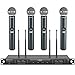 PREMIUM WIRELESS PERFORMANCE: 4 channel UHF wireless microphone & system with selectable frequency. Channel 1: 538.3 - 550Mhz (40 channels). Channel 2: 554.8 - 566.5MHz. Channel 3: 571.3 - 583MHz. Channel 4: 587.8 - 599.5MHz. Employs hassle-free IR synchronization to pair up the receiver and cordless mics smoothly within seconds, minimum dropouts, and maximum feedback rejection. Long range operation for wireless DJ microphone system of 290ft – 328ft line of sight.